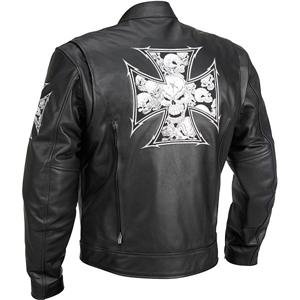 River Road Iron Cross & Skull Leather Jacket - 50/Black : Features
